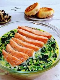 三文鱼蒸菠菜鸡蛋羹的制作方法