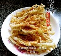 金针菇:大家都爱的一种菌类,营养丰富,将它裹蛋液淀粉油炸,香