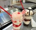 清凉一夏,逛街带宝贝吃DQ冰淇淋夏天走那热 逛街去了。偶遇DQ冰淇淋。点二个最近出的新品,巧克力芭菲和樱花芭菲冰淇淋。宝贝喜欢吃的。看着也漂亮。 暑假来了,带着宝贝闲逛去吧。现在也很热的,进商场逛比较凉快。来到商场二楼看见DQ,哈,随时随D,Q享芭菲真的,真的这么巧么! 上午9点多时间段人不是太多。点了广告上的二款巴菲冰淇淋。一杯樱花巴菲,一杯巧克力巴菲。服务生特别的熟练几下就做好。 这杯是巧克力巴菲冰淇淋。以奥利奥碎片为底,淋上第一层冰淇淋后,叠加上草莓酱和华芙碎,二层冰淇淋覆盖,再落以巧克力酱,巴旦木,以及黑白巧克力卷合成滴。口感特爽!宝贝看见很眼红啊。立马就要吃,哈哈,我喊着先别吃拍一个吧,宝贝忍着。。。。。。。有些残忍吧 我转头在去端樱花巴菲去。回来一看,杯子上的拉丝的巧克力棒和樱花片都被吃下肚了。哈。每个层次的口感和外表太吸引宝贝了。不可以怪宝贝是吃货,都是巴菲惹的祸:) 樱花巧克力巴菲,也是我的最爱。服务生做的时候,我随便问下,原来杯子的底层铺的是草莓蛋糕粒呐。然后看见覆盖冰淇淋。浇上水蜜桃的果酱,还有草莓蛋糕的颗粒。然后在浇上冰淇淋,樱花果酱,做好了,杯子上边用一片巧克力樱花片好漂亮! 坐下来慢慢的享受樱花巴菲的味道和口感。舀一勺冰淇淋,看见樱花果酱颜色娇艳吧,口感酸甜浓浓的奶香,一不小心就会吃到软绵的草莓蛋糕颗粒。太爽了,午饭可以不吃了:) 不一会宝贝完成自己的巧克力巴菲了。好吧,我把这杯樱花的巴菲送过去了。一下又吃了半杯,被我要回来了,吃多了,午饭又不吃了,其实我也饱了。临走宝贝又提要求,问那天还来吃啊?哈哈,看看吃上瘾了啊