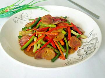 分享我做的腊肠烧蒜苔