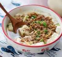 这道菜肴使用的是南豆腐,采用蒸的方式,更能保持豆腐的原汁原味