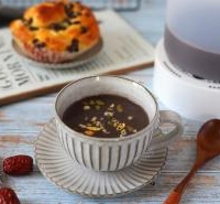 三黑米糊,就是用黑米、黑豆和黑芝麻三种黑色食材做成的,我还加