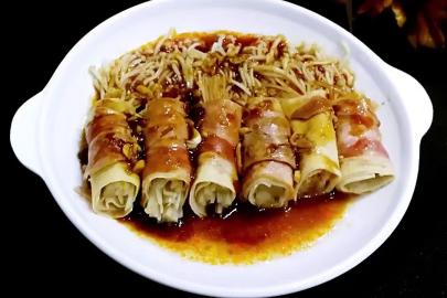 培根豆腐皮金针菇卷
