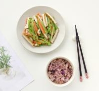 藜麦炒饭,加了脆皮肠、香菇、胡萝卜、酸黄瓜