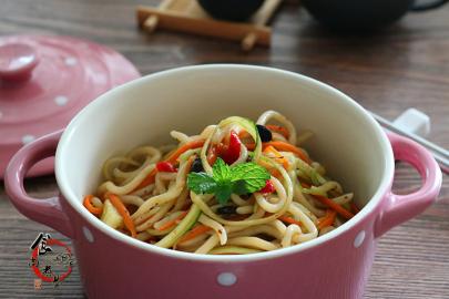 黄瓜胡萝卜辣酱拌面