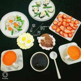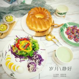 吃好每一餐!戚风蛋糕,水果,抹茶豆浆,彩米丸子,沙拉菜