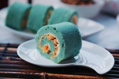 蝶豆花蛋糕卷