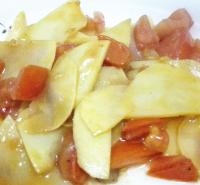 土豆片和番茄一起炒,开始我是拒绝的。可是吃过之后才发现这道菜