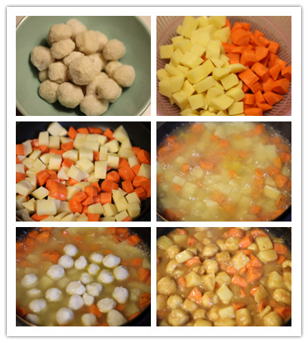 冻鱼丸1袋、胡萝卜1根、土豆1个、咖喱酱250g