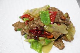 牛里脊肉最适合爆炒着吃了,加上青红椒片搭配,色香味俱全啊