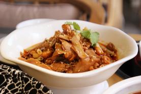 用菇类制作出夫妻肺片的口感,采用树耳和杏鲍菇,口感极其相似,