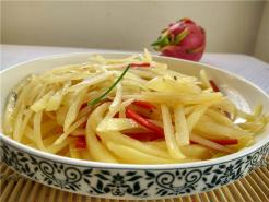 酸辣土豆丝是一道色香味俱全的传统菜式。此菜是大家餐桌上最常见