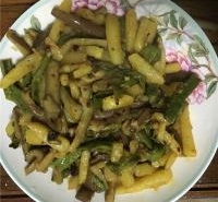 \"地三鲜\"是很有特色的一道东北地方传统家常菜,选用了三种地里