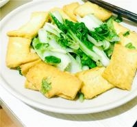 黄金色的豆腐,外焦里嫩,翠绿的小白菜,清爽可口。清脆的白菜正