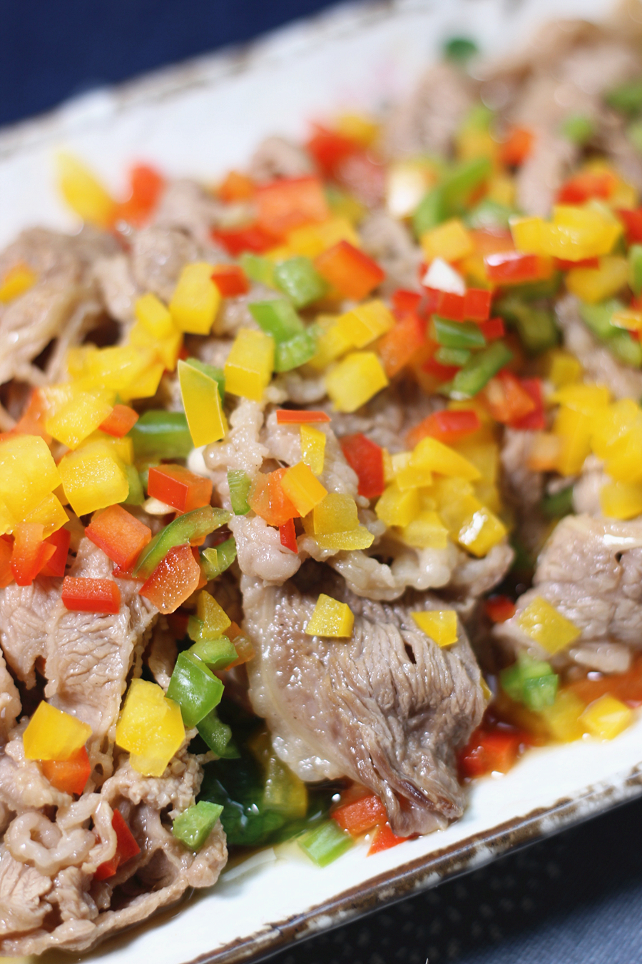 最后撒上青椒红椒粒,黄灯笼粒,淋油即可