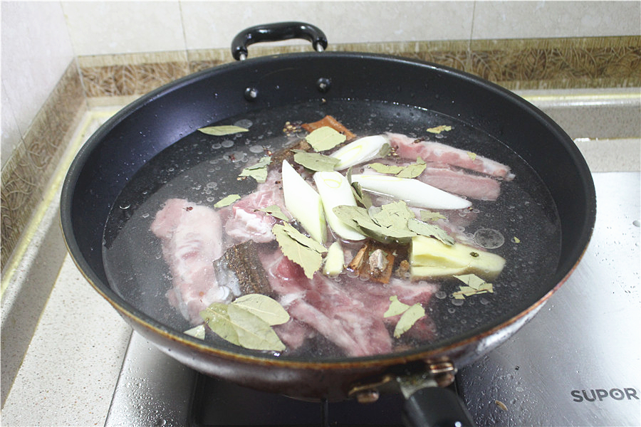 辅料:姜、八角、三奈、草果、桂皮、姜丝、大葱、花椒