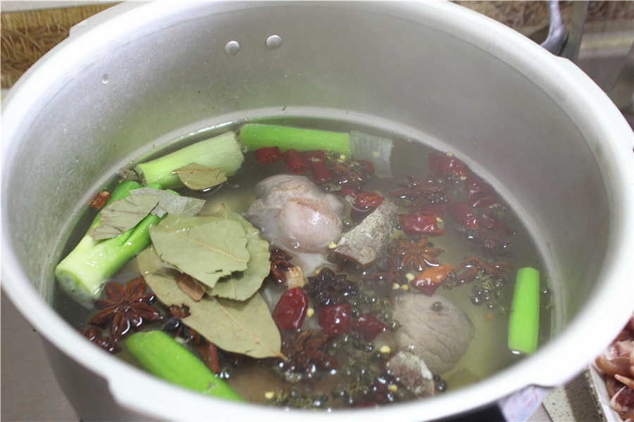 配料:山奈、八角、草果、姜、花椒、干海椒、泡椒、大葱、蒜、花生米