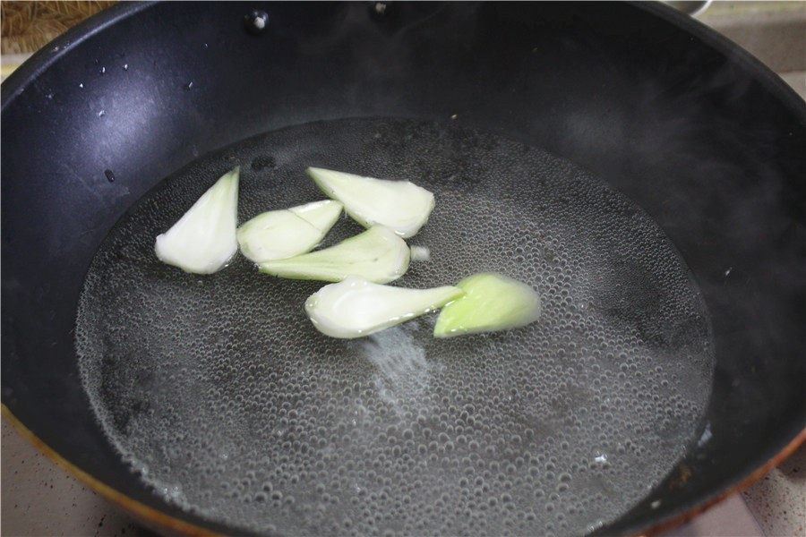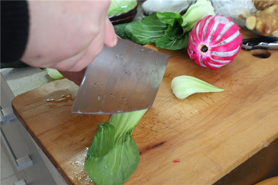 锅里加水,待水煮开后,丢入上海青,氽水捞起
