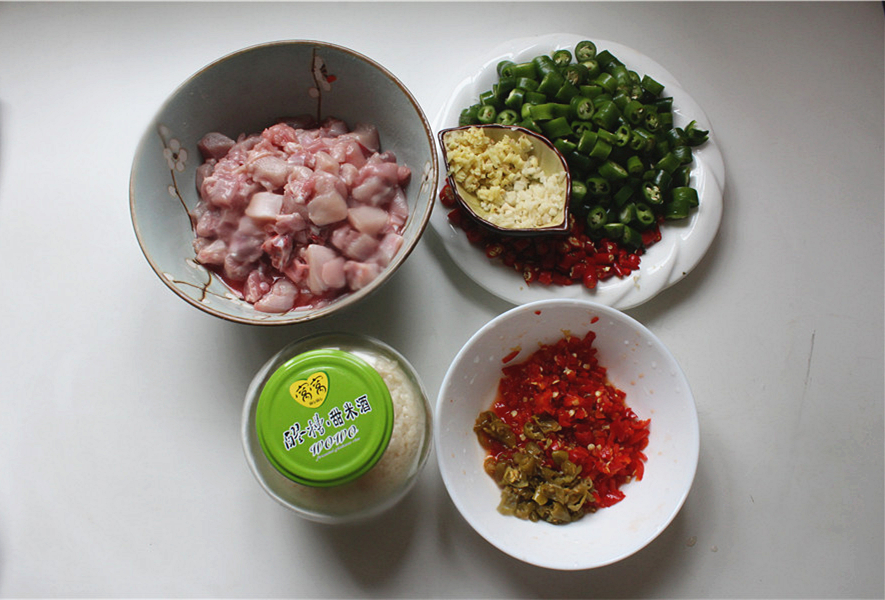 配料:泡椒酱、姜、蒜、二荆条、小米辣、大葱、豆瓣