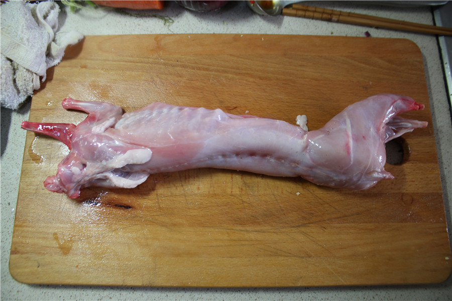 准备好兔子、醪糟、啤酒、小米辣、大葱、泡椒酱、姜、蒜、二荆条