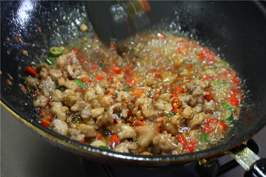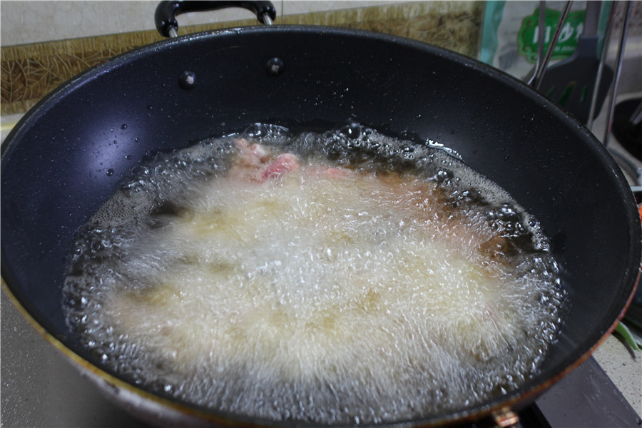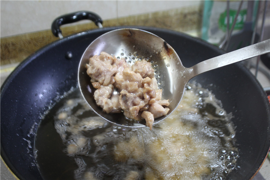 A:短时间的在油锅里过一下,为了让肉定型、口感更嫩。