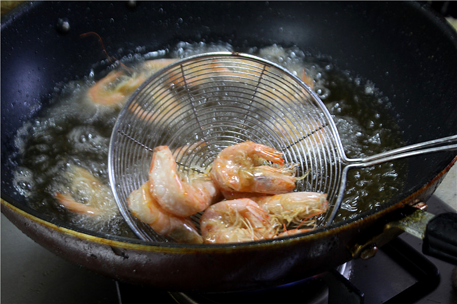 A:炸至虾壳变色起泡,形状变弯曲即可