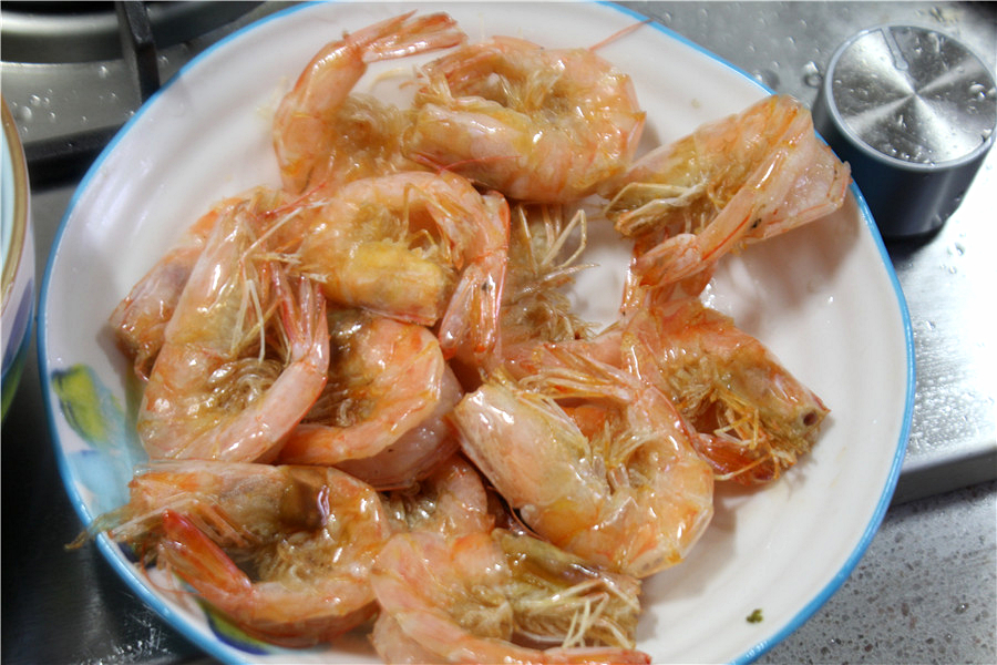 将鲜虾洗净,去头
