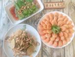 凉拌秋葵,虾,柠檬鸡丝