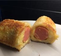 再换个花样吃三明治,卷起来裹上鸡蛋面包糠煎一下,外层金黄酥脆