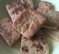 老豆腐比嫩豆腐含钙更多,口感也跟香醇厚实,用油煎炸过后,色泽