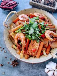 今天和大家分享一款, 用cook100麻上辣香锅调料做的麻辣香锅,