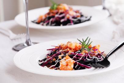 轻食餐:鲜虾墨鱼意面沙拉