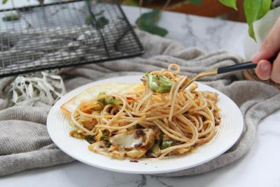 微辣咸香包菜碎虾蓉酱拌意面