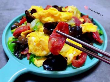 腊肠儿菜木耳炒蛋