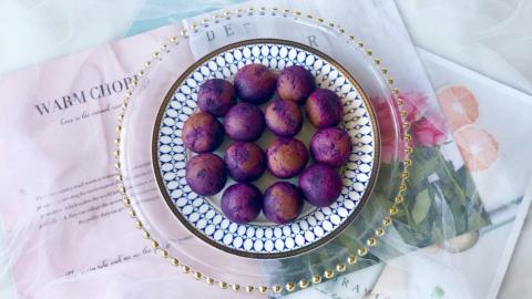 超长拉丝的芝心紫薯球
