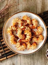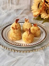 不加一滴油的凤尾虾球,整只鲜虾包成团,外脆里软, 虾肉鲜美