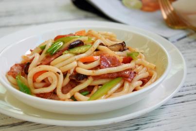 黑椒培根炒乌冬面