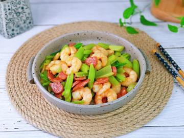 芹菜虾仁炒香肠