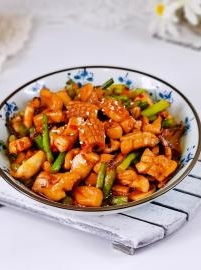 香辣鱿鱼炒蒜苔