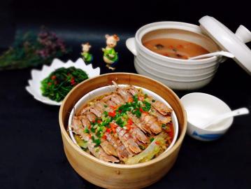 冬日一锅出:皮皮虾蒸白菜+红菇目鱼猪肚汤