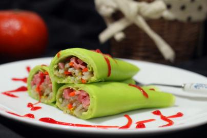菠菜汁豆芽卷饼