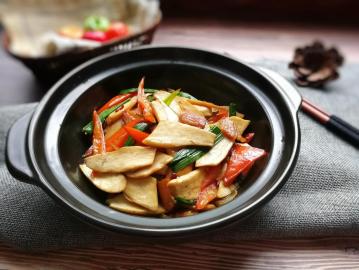 腊肉干锅鸡腿菇