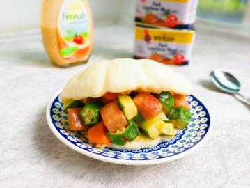 法式沙拉酱午餐肉夹荷叶饼