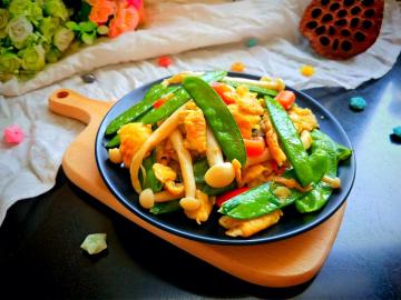 春的气息! 荷兰豆白玉菇炒鸡蛋