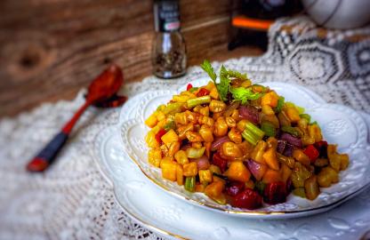 腊肠五彩炒疙瘩