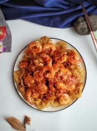 酥脆云吞皮茄汁虾