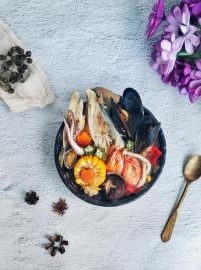 三文鱼头海鲜杂蔬汤