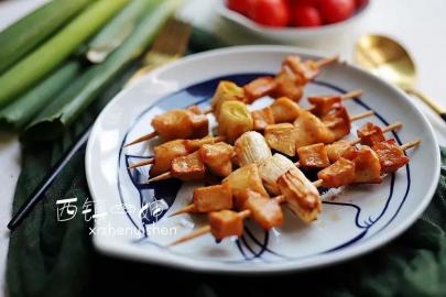 孩子们爱吃的照烧味杏鲍菇鸡肉串