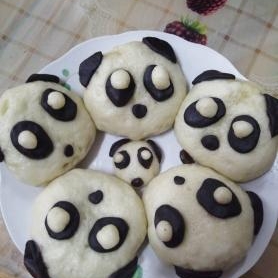 第一次做的“熊猫豆沙包”,一家人正好一人一个。