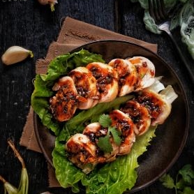 香喷喷的黑胡椒烤蔬菜鸡腿卷